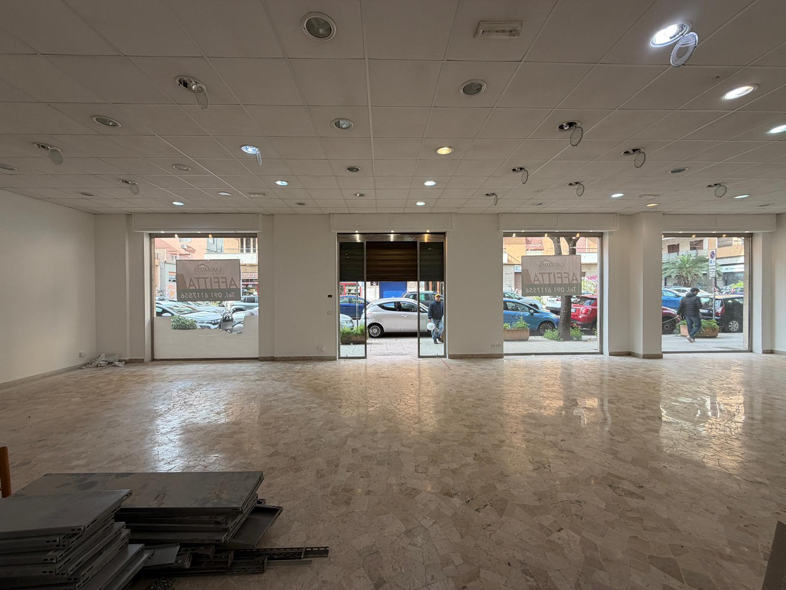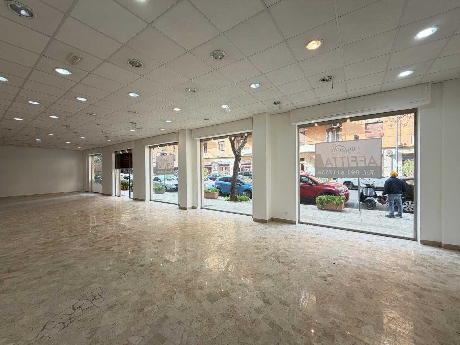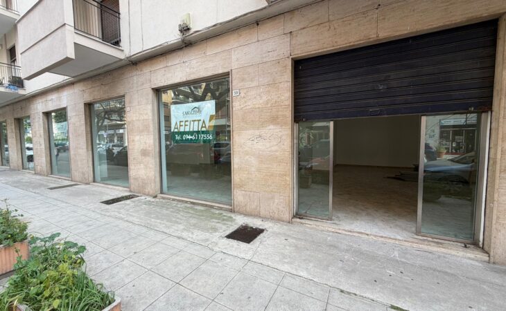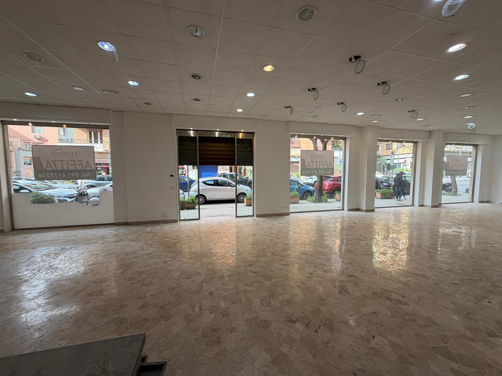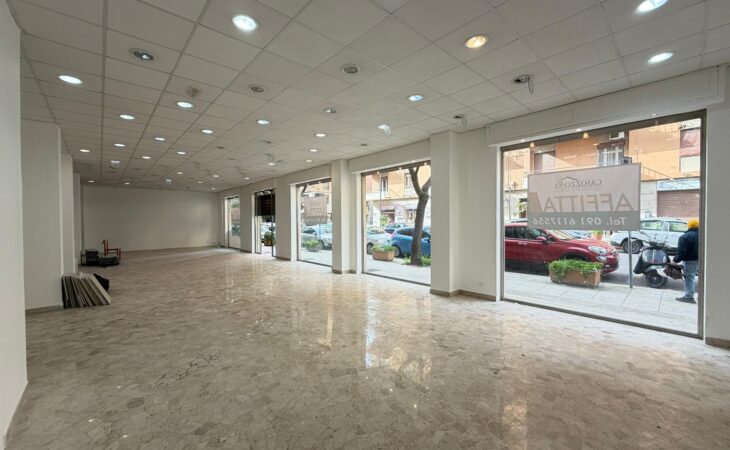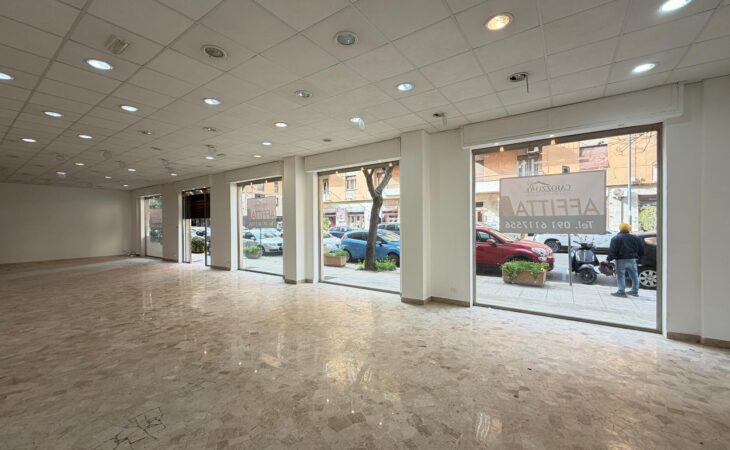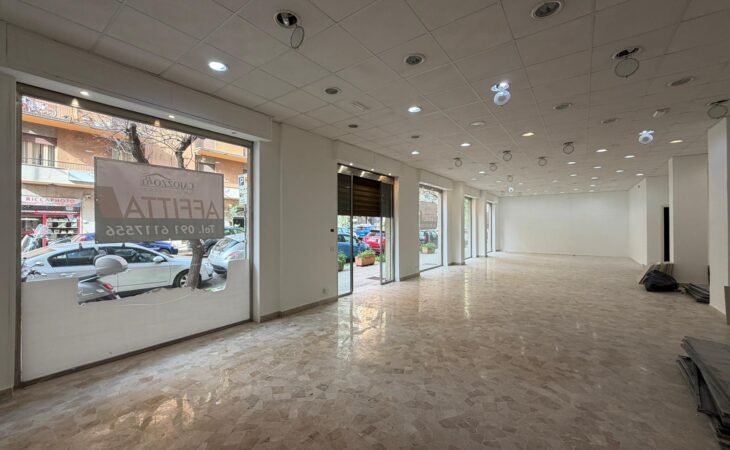 Rif. Leopardi55: in via Leopardi 55-59, a pochi passi da Piazza Unità d’Italia (Villa Sperlinga) proponiamo in affitto un luminosissimo locale commerciale (C/1) di 200 mq con 4 vetrine su strada, in perfetto stato. Certificazione energetica G.