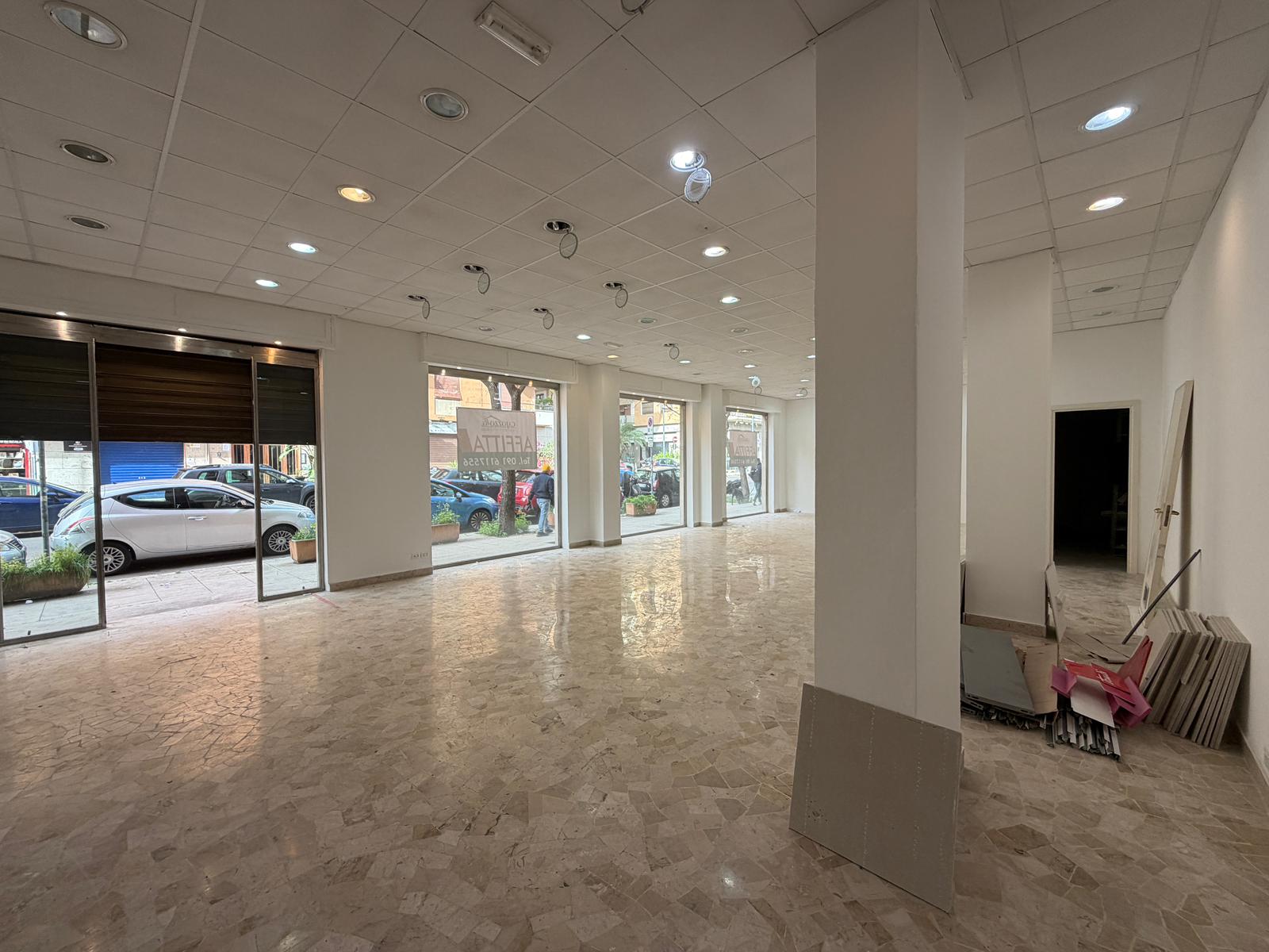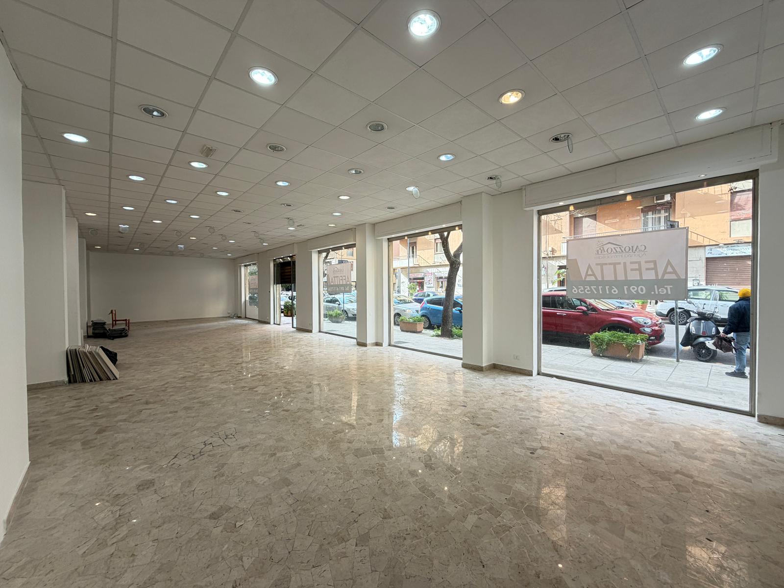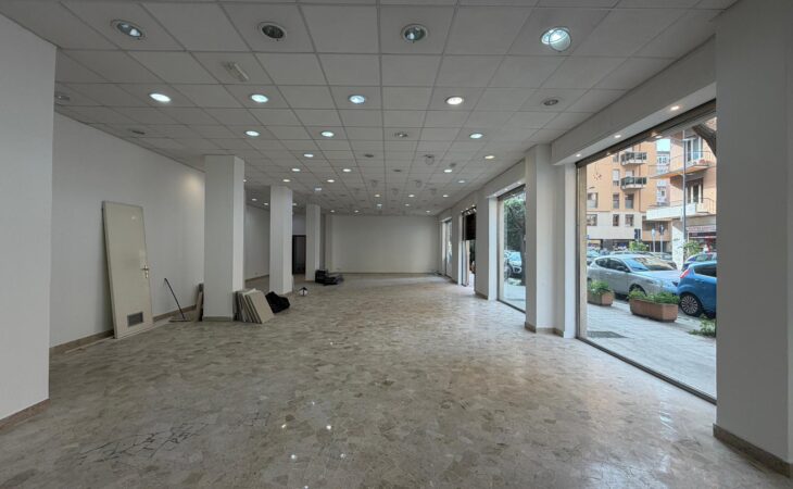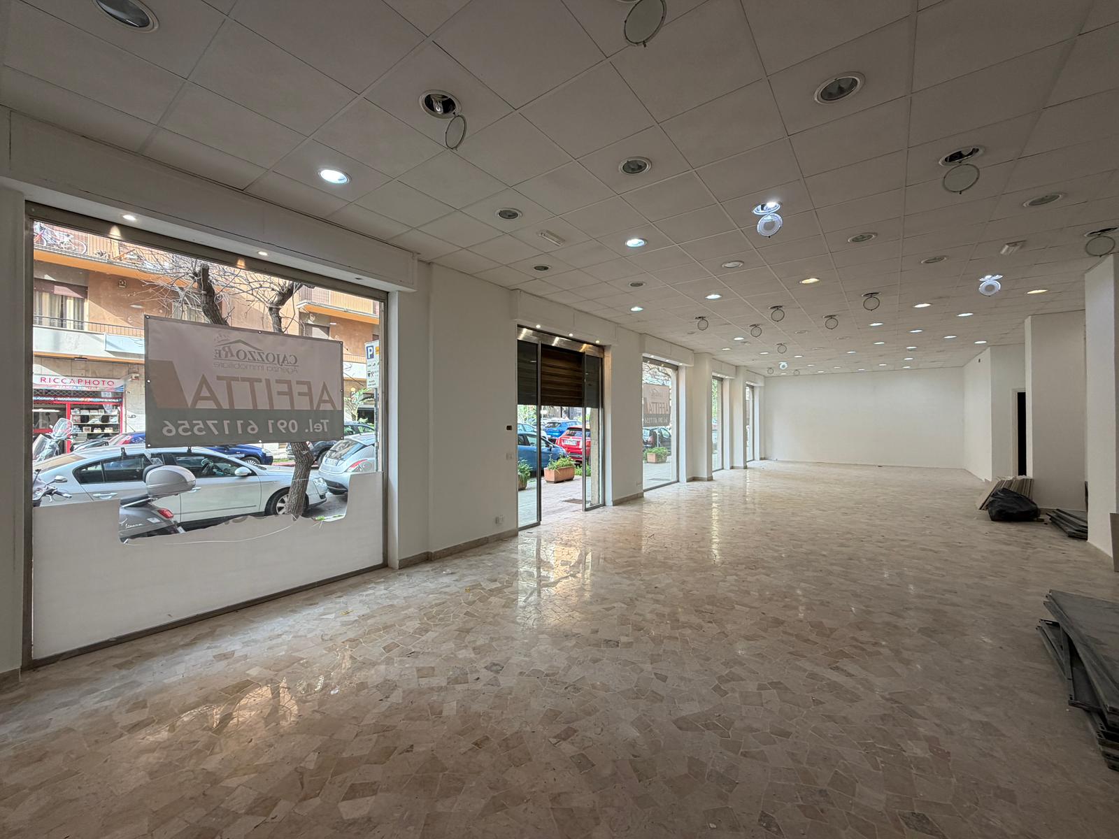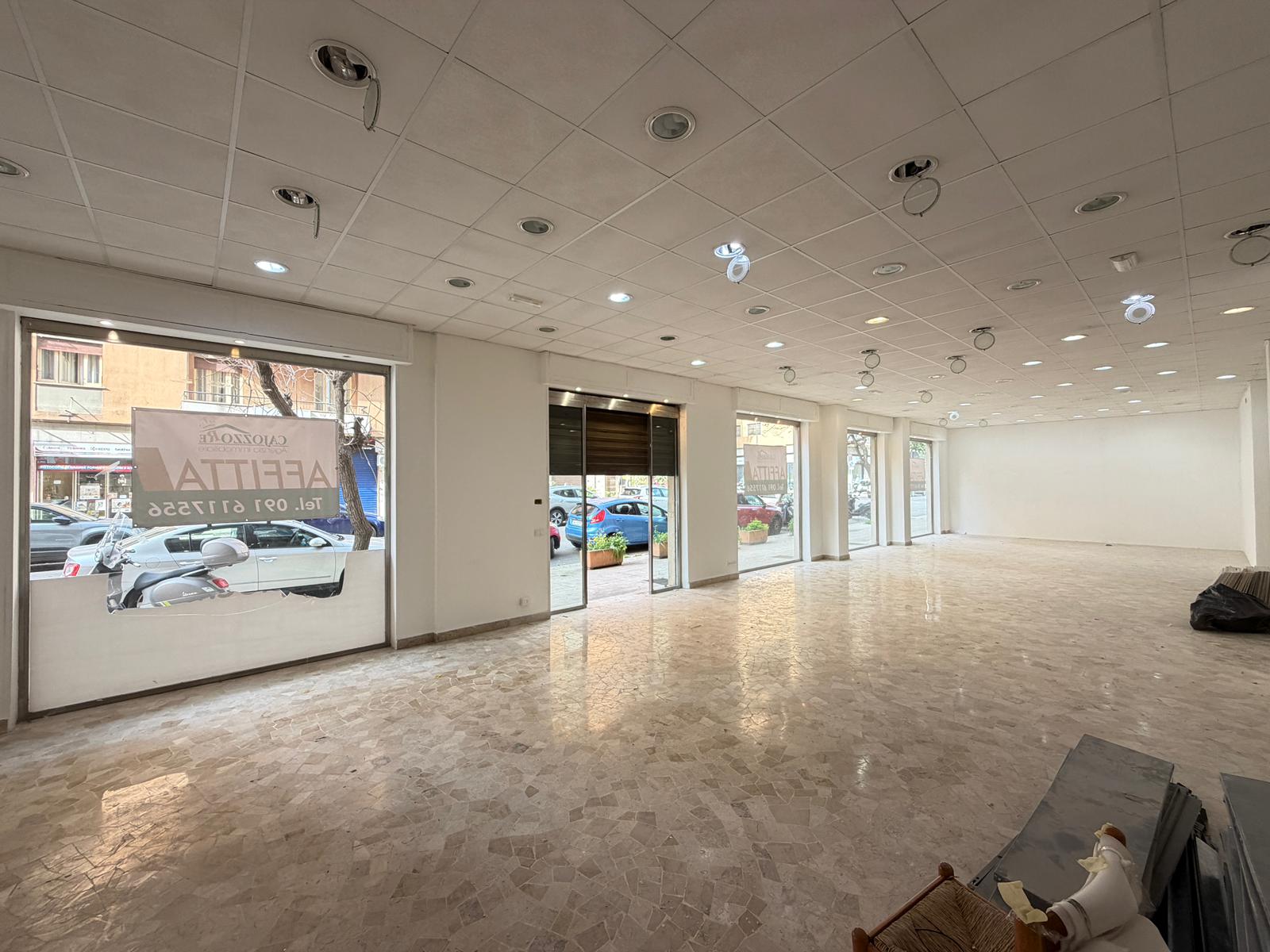 Rif. Leopardi55: in via Leopardi 55-59, a pochi passi da Piazza Unità d’Italia (Villa Sperlinga) proponiamo in affitto un luminosissimo locale commerciale (C/1) di 200 mq con 4 vetrine su strada, in perfetto stato. Certificazione energetica G.