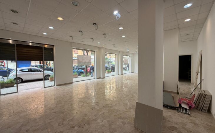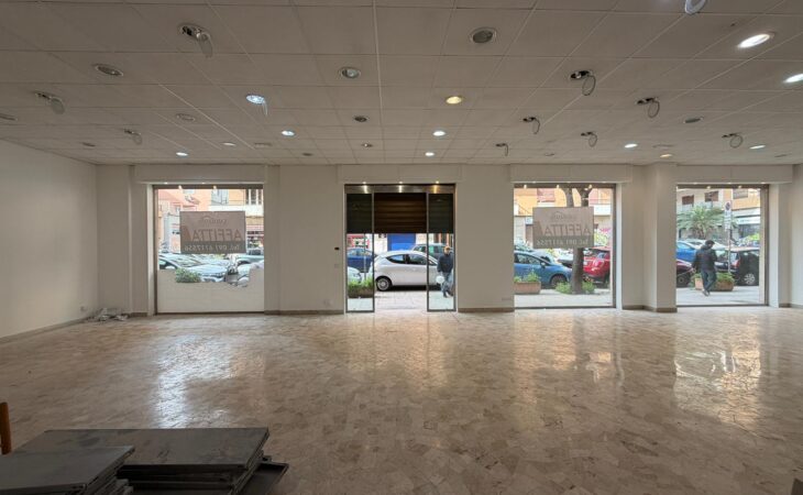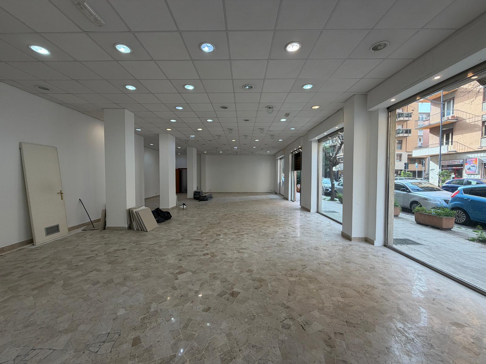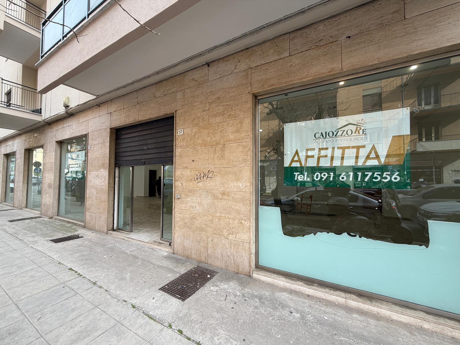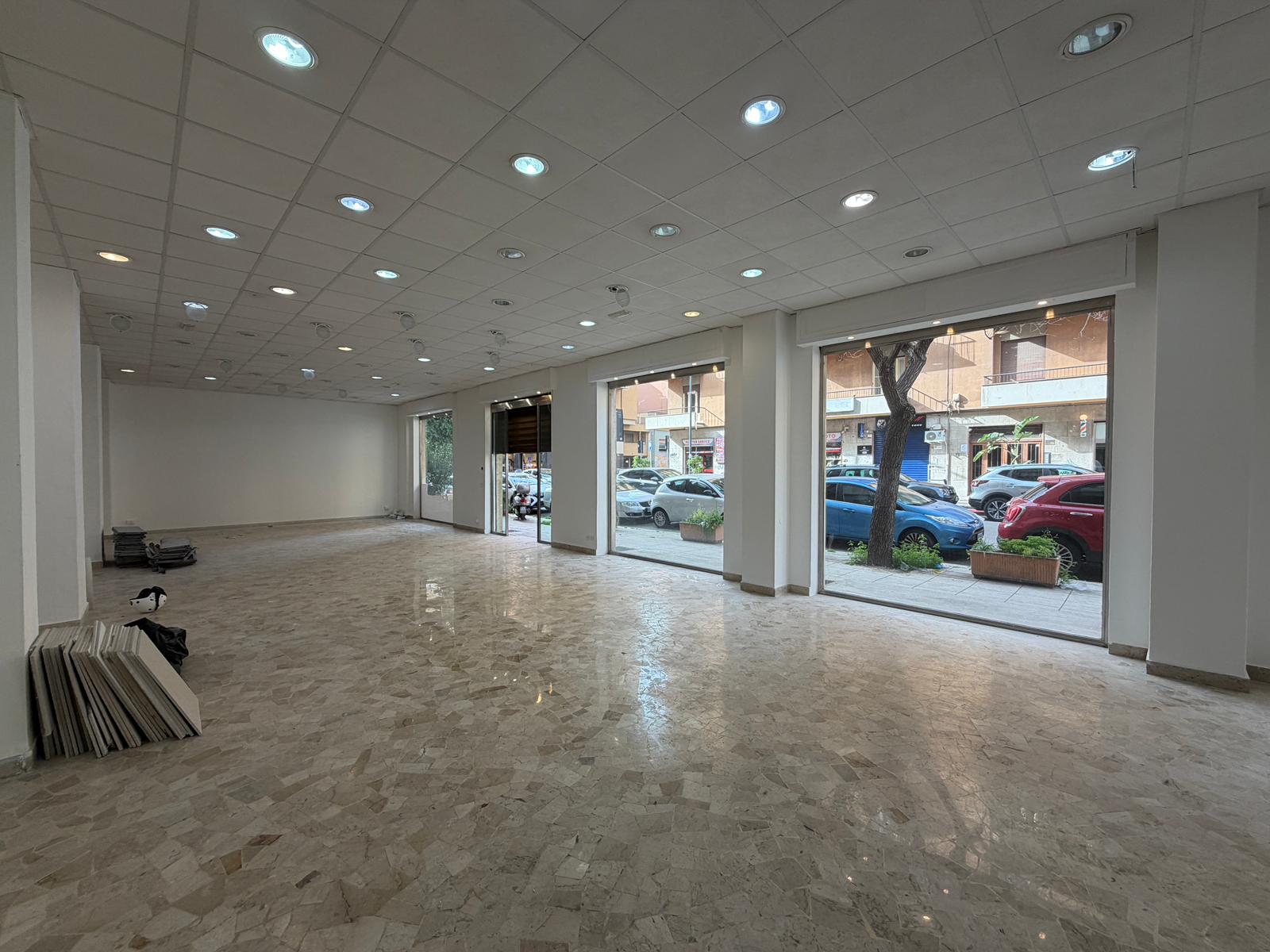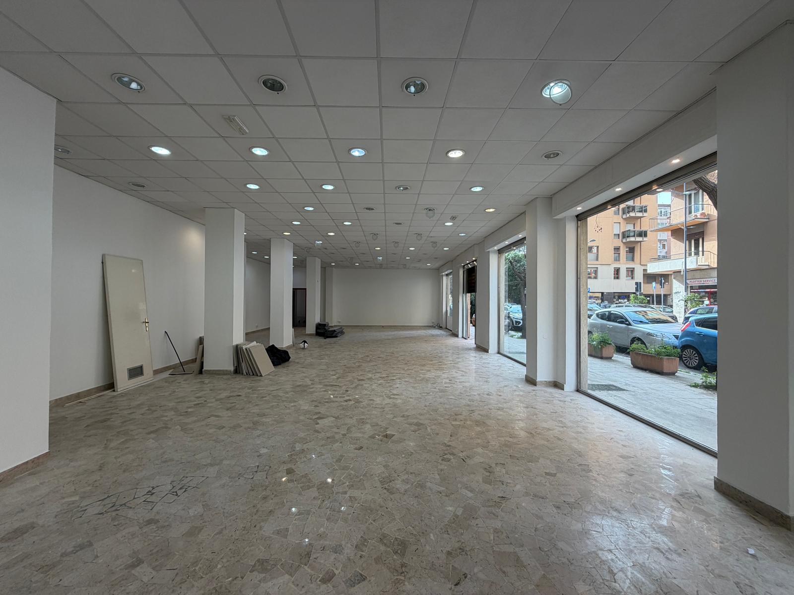 Rif. Leopardi55: in via Leopardi 55-59, a pochi passi da Piazza Unità d’Italia (Villa Sperlinga) proponiamo in affitto un luminosissimo locale commerciale (C/1) di 200 mq con 4 vetrine su strada, in perfetto stato. Certificazione energetica G.